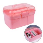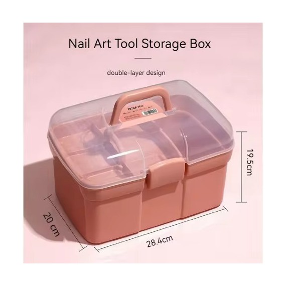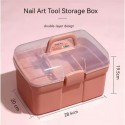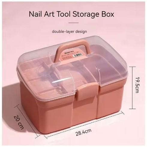 صندوق تخزين محمول بمقبض – طبقتان لتخزين أدوات العناية بالأظافر والتنظيم في المنزل أو السيارة أو الفندق