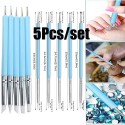 5Pcs/Set Professional Nail Art Silicone Embossing Brush Dual Head UV Gel Dotting Painting Pen Clay Sculpting Drawing Tools
