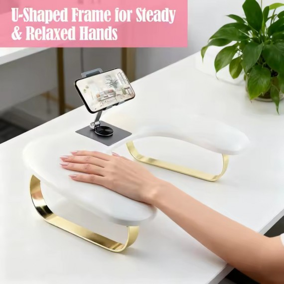 Nail Art U-Shaped hand pillow Soft PU Leather with Rotating Phone Holder Nail Arm Rest Manicure Pad mat Manicurist Special Tools Product sellpoints Rotating phone holder: Easy access to phone while working. Nail arm rest: Perfect for nail art and manicure. Soft PU leather: Gentle on skin during manicure. U-shaped design: Comfortable shape for hand support. Manicurist tool: Essential for professional nail care.