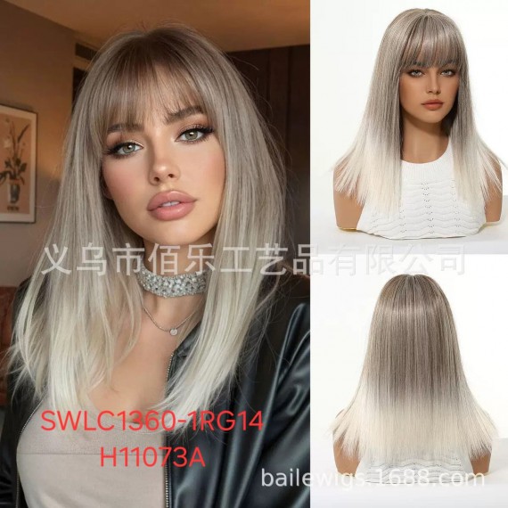 Heat-Resistant Synthetic Wig, Medium Long Hair With Bangs, Model SWLC1360-1RG14-H11073A