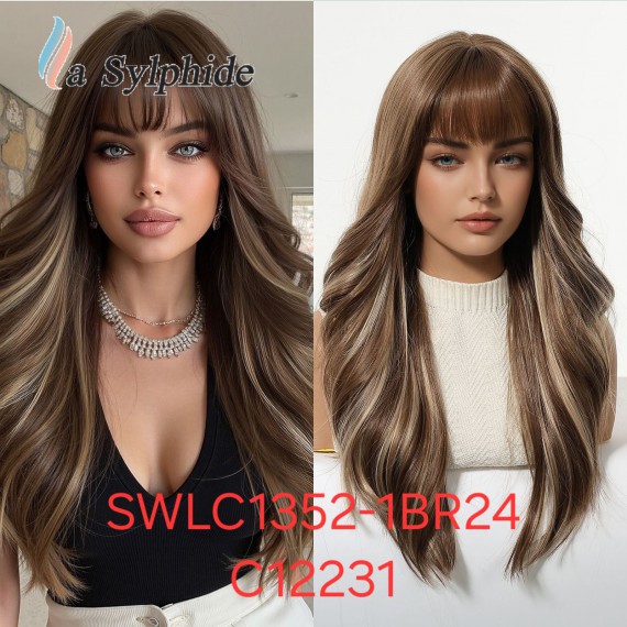 Heat-Resistant Synthetic Wig,Long Hair With Bangs, Model SWLC1352-1BR24-C12231